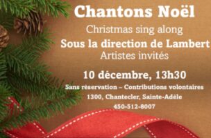 Le 10 décembre 2022, à 13 h 30. Un beau moment ouvert à tous. Amenez vos amis et votre famille pour chanter nos classiques de Noël! Écoutez C’est Noël à Sainte-Adèle de